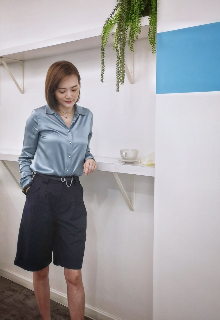 Their design is simple, and they have variety of choices. They have many colours in each designs too. Their silk is skin-friendly and high quality. One of the pieces that I purchased was this beautiful blue haze colour shirt with pearl button. I have to say that I am slight regret on the pearl button, because I might not able to find the exact same one if I ever drop one! So, maybe I will get those simple design with ordinary button in my next purchase.